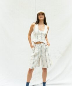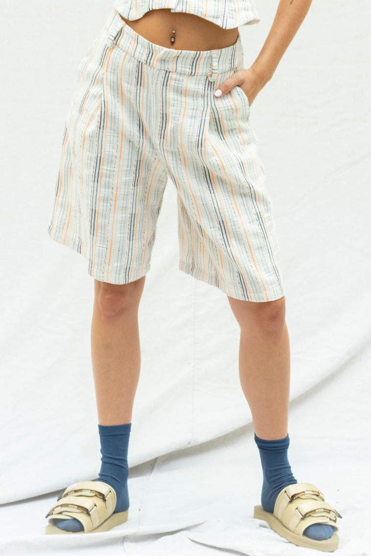 Knee length bermudas with belt loops and pleat at the front.