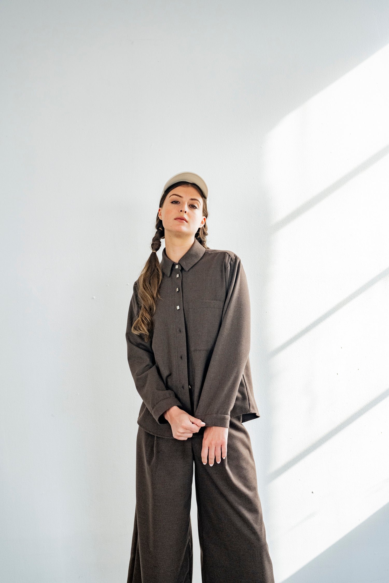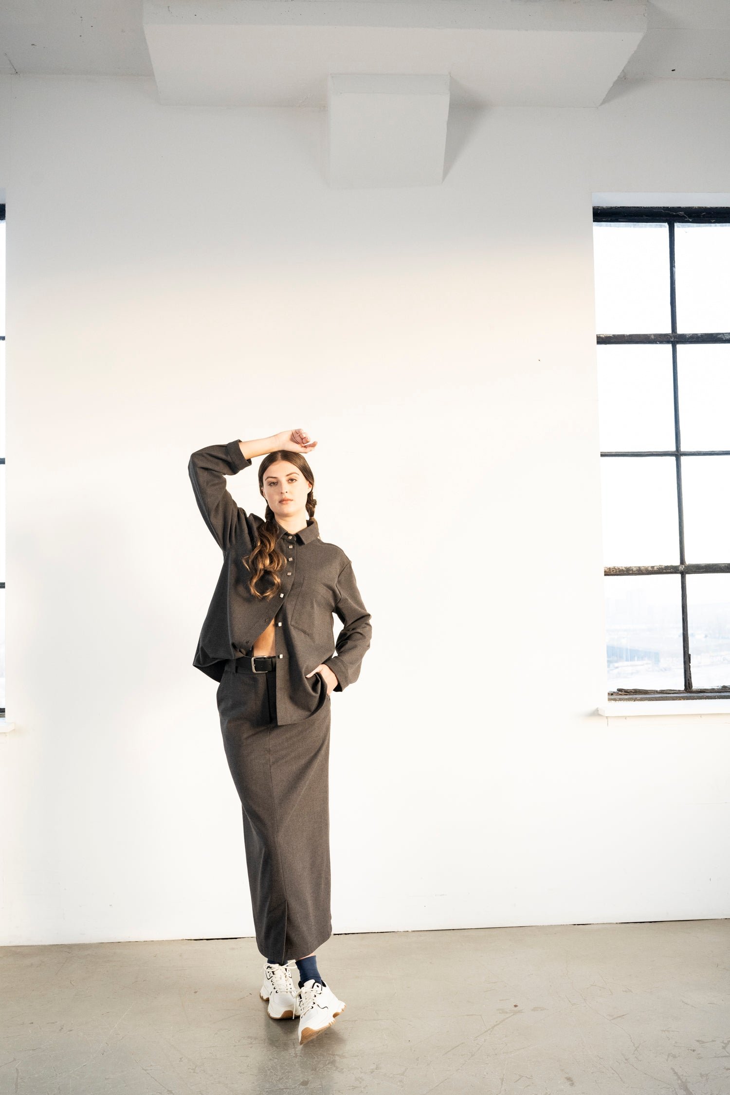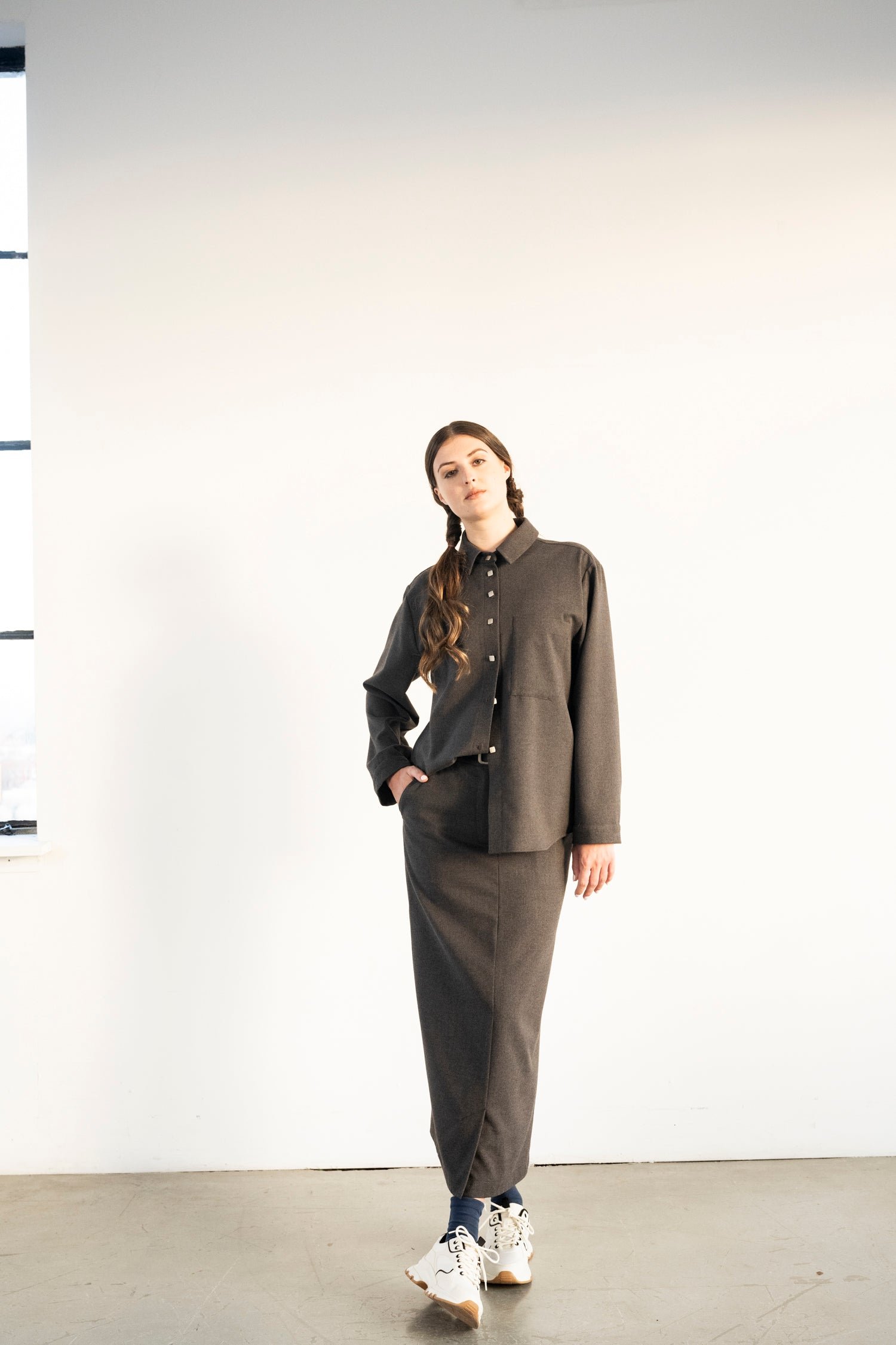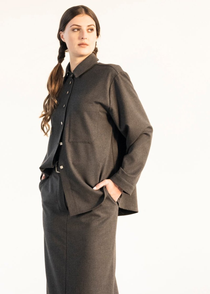 Button down shirt with our staple square metal buttons. Pocket on the front and pleat detail at the back with rounded hem. ***Designer’s tips: This shirt looks great with trouser or our fitted Jordan skirt, leave it untucked for a more casual look.