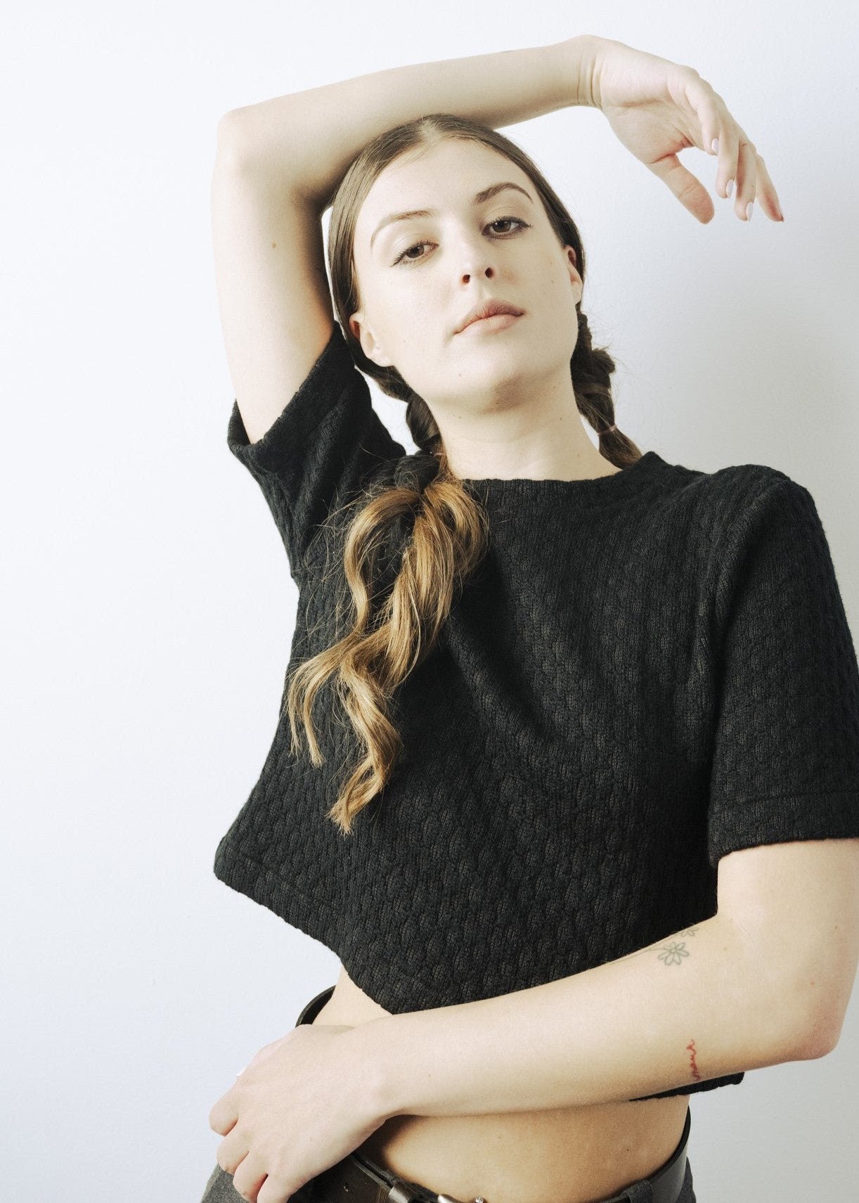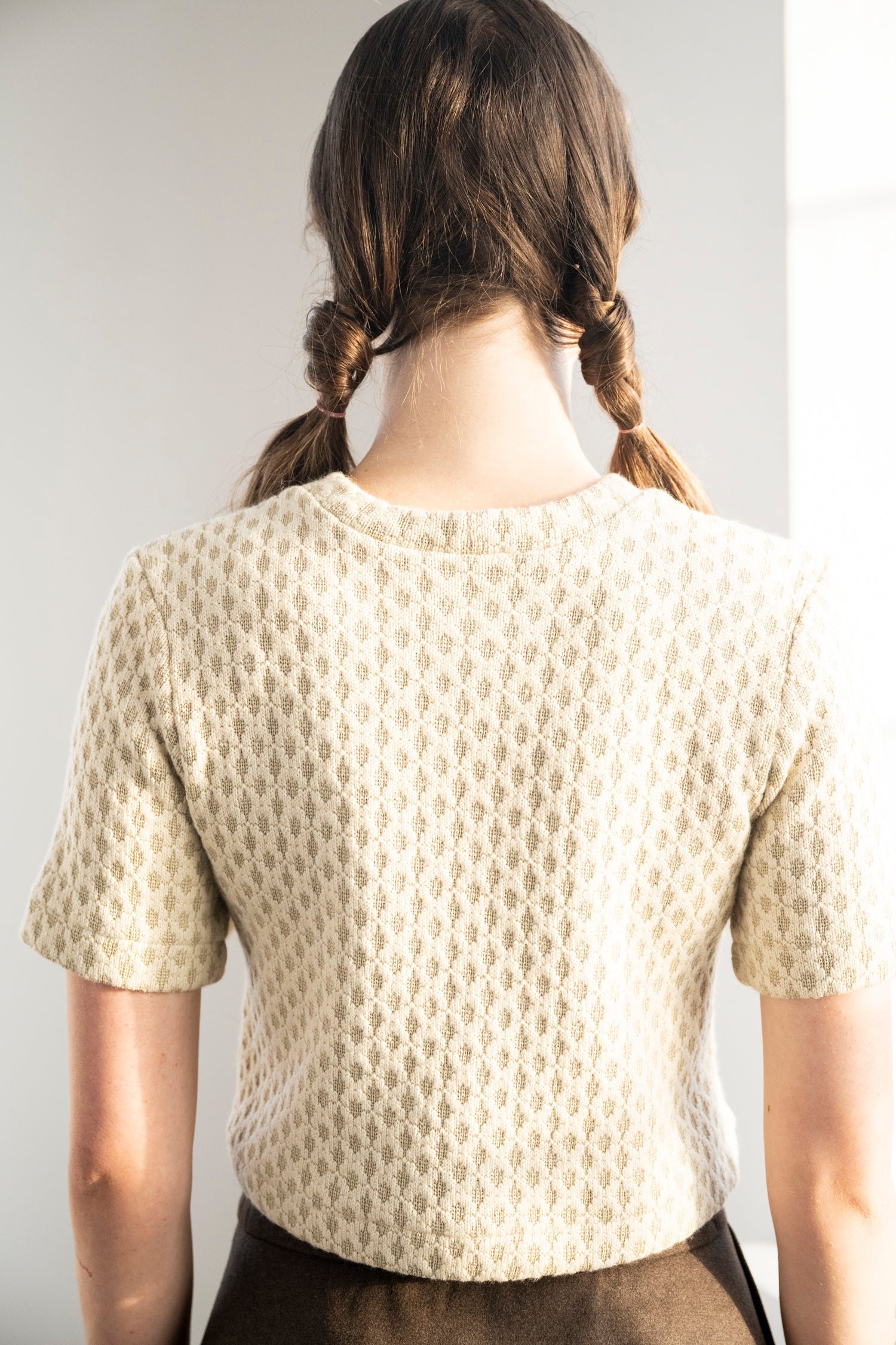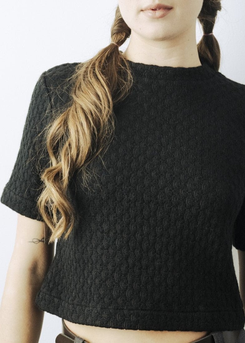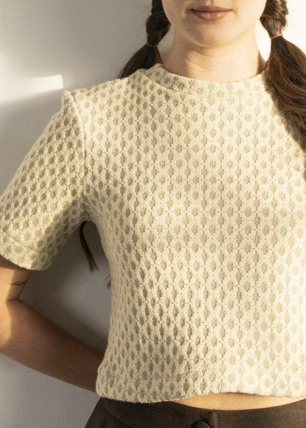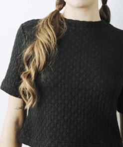 Mock collar fleece top. Fitted elbow-length sleeve T-Shirt.
