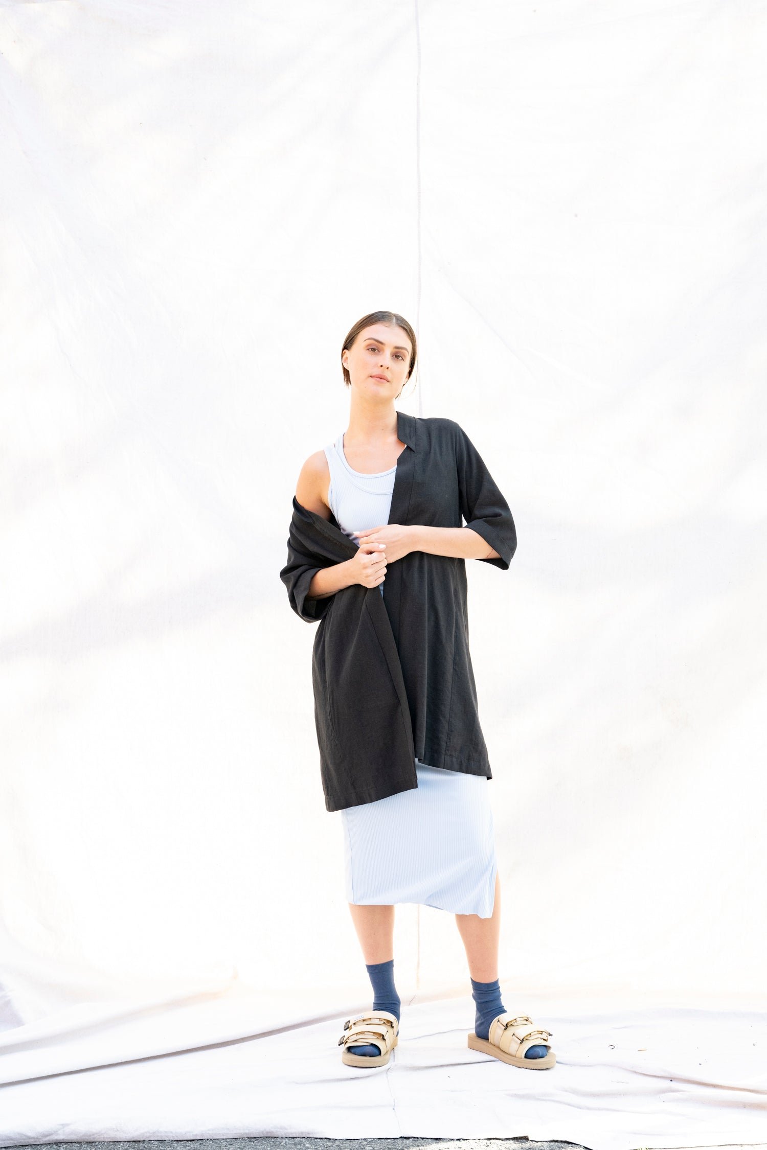 The viscose-linen fabric combination provides a gentle and airy sensation with a soft and delicate texture.