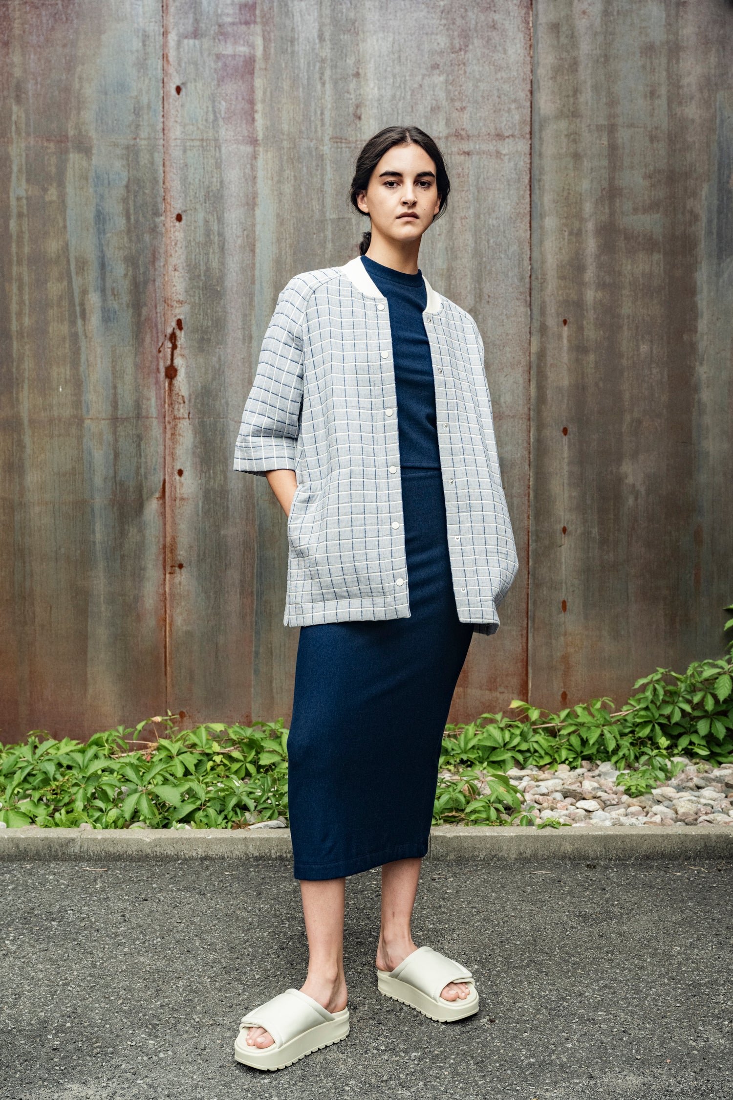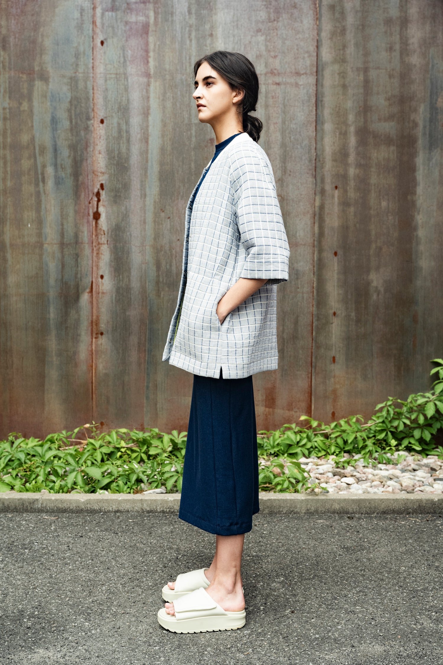 Crafted with a distinct tiled fabric that allows for a unique construction. The fabric is made with a light padding and is lightweight, showcasing bold contrast lines for added texture and a touch of rigidity to the overall design.