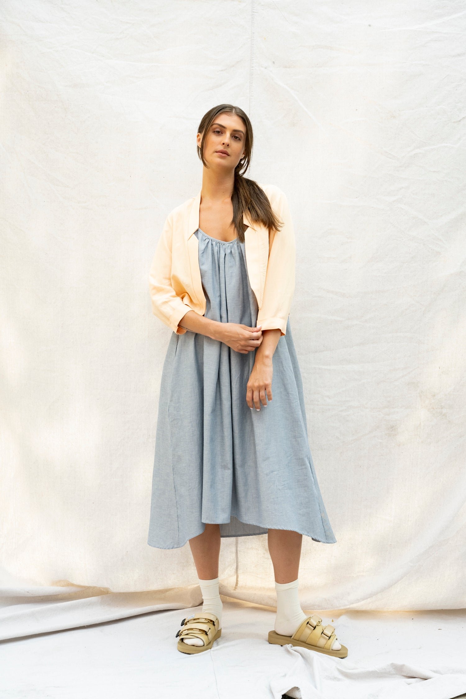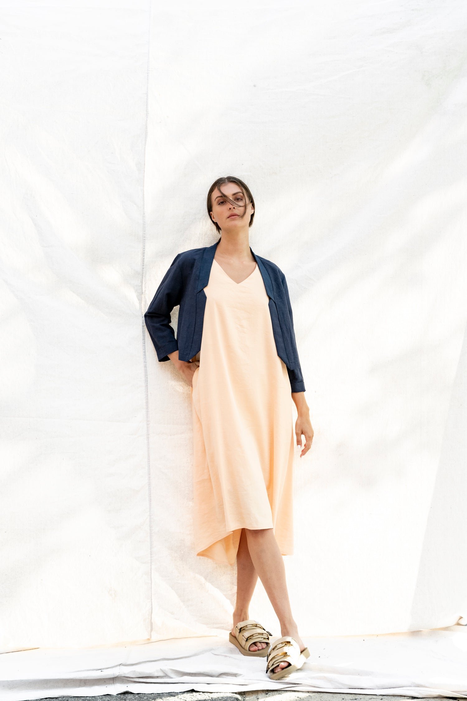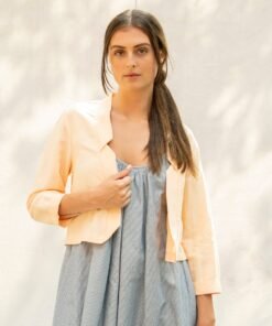 The viscose-linen fabric combination provides a gentle and airy sensation with a soft and delicate texture.
