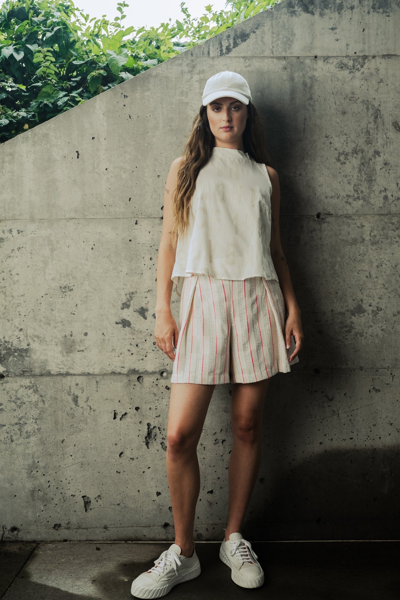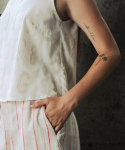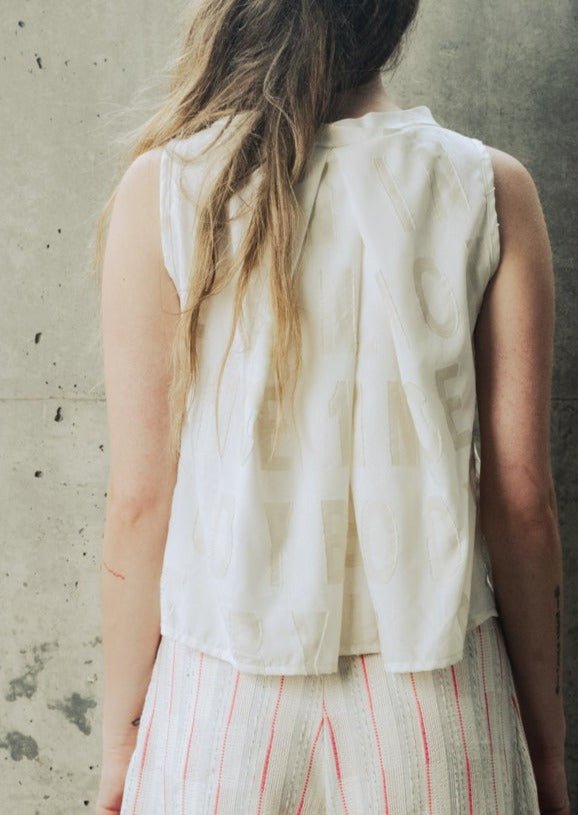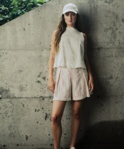 Sleeveless top. Pleats detail at back.